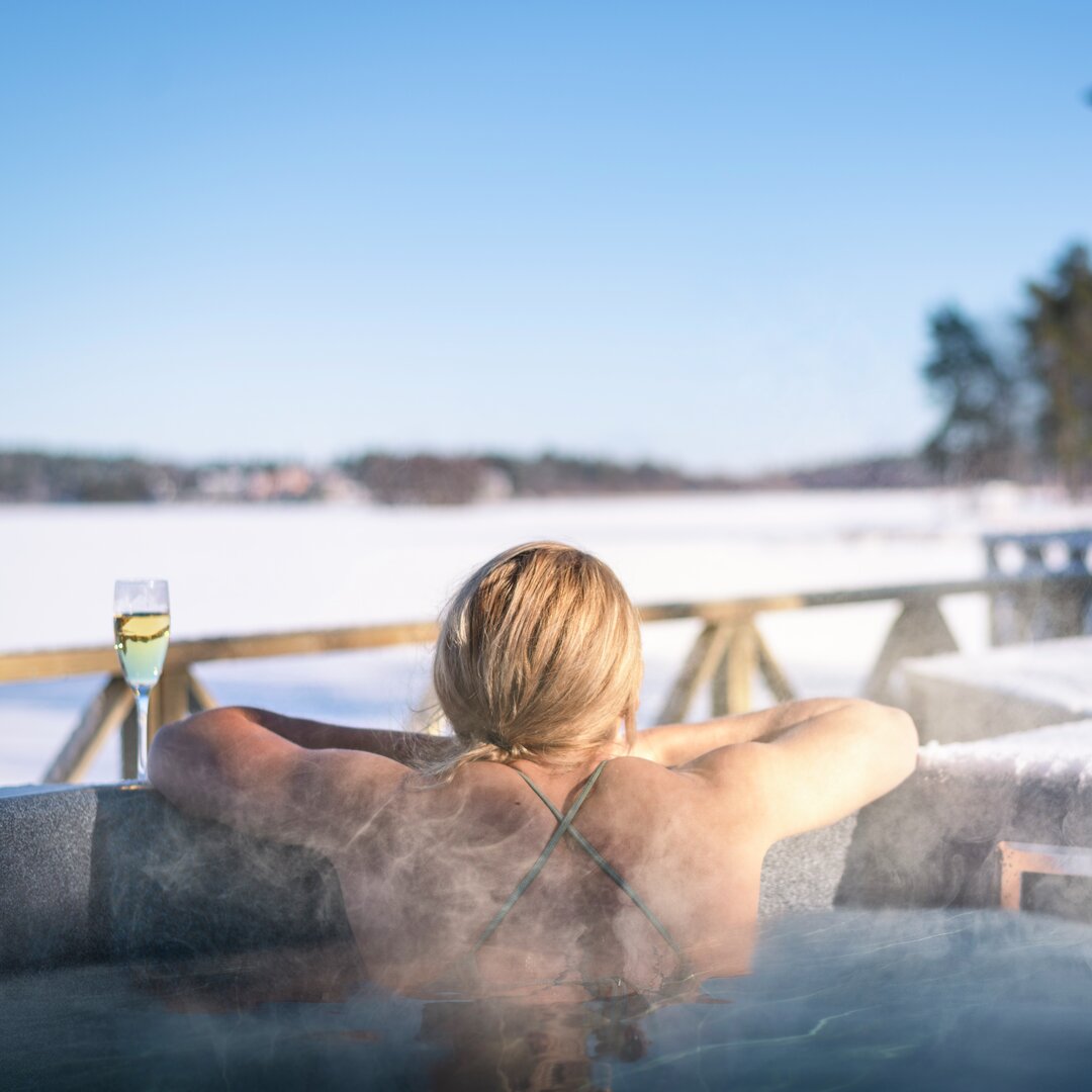 Checka in på Skytteholm, skåla i bubbel, koppla av i relaxen med varm utomhus pool, badtunnor och bastubad. Njut av middag och stor härlig frukostbuffé.